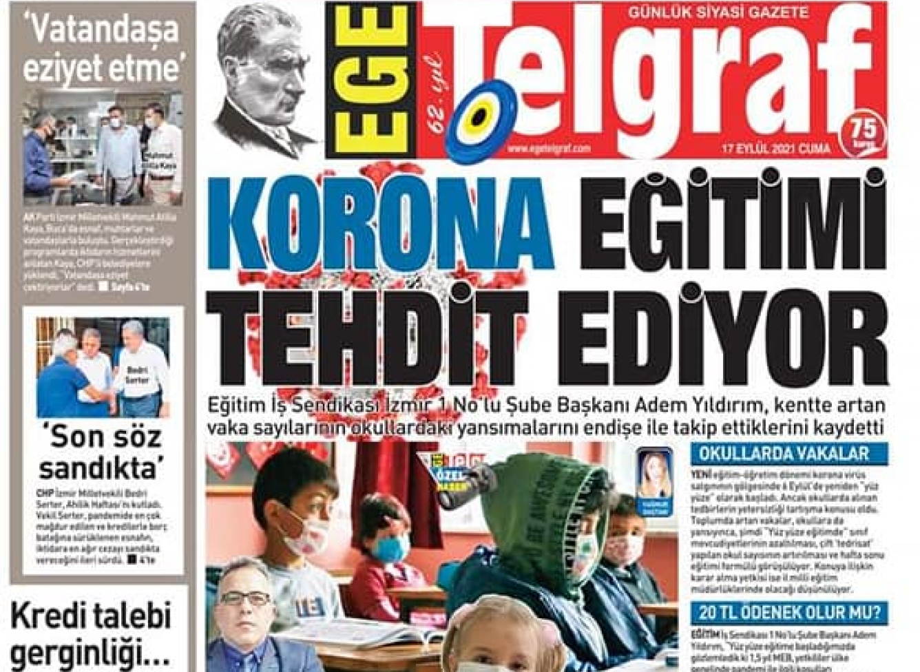 Korona Eğitimi Tehdit Ediyor - 17.09.2021 Ege Telgraf gazetesi